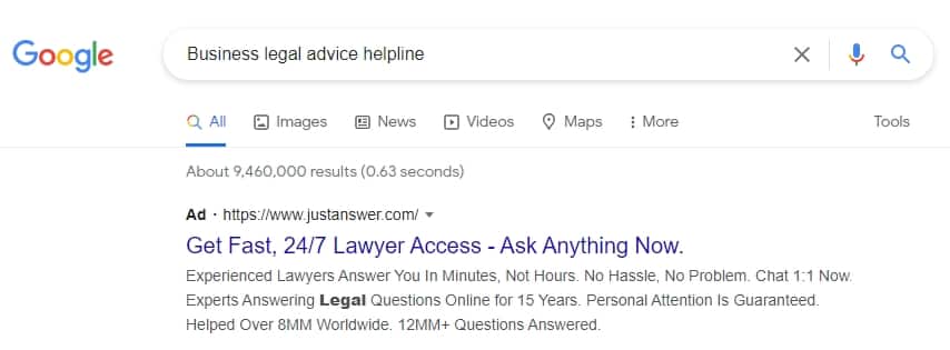 For example, if you target “business legal advice,” you’ll have tough competition. But if you target “business legal advice helpline,” the environment shifts.