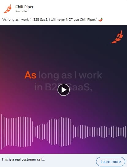 example of a relatable LinkedIn Ad by Chili Piper*A funny LinkedIn ad by Chili PIper, targeting B2B audiences*