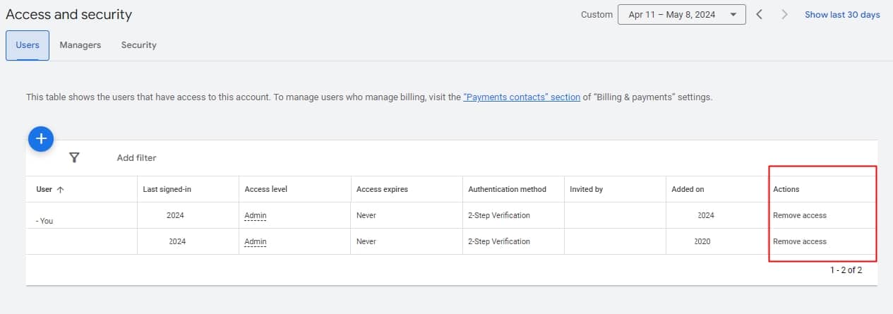 If you need to revoke access to your Google Ads account, head back to “Access and security.”