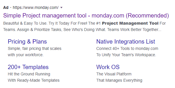 Monday uses the same keyword (“project management for your team”) in their ad and landing page. This reinforces the intent and tells searchers: “Yes, you came to the right place!”