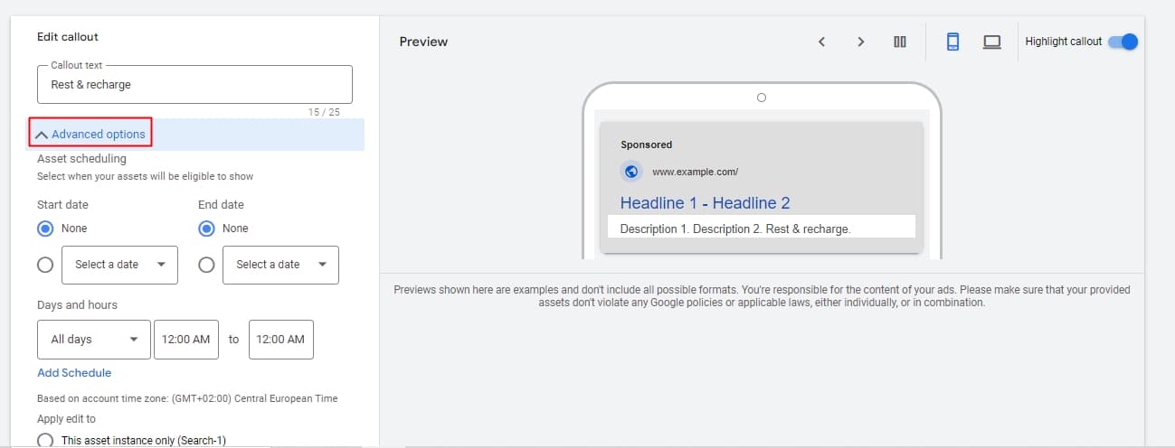 How to Set up, Edit, Remove, and Schedule Callouts in Google Ads