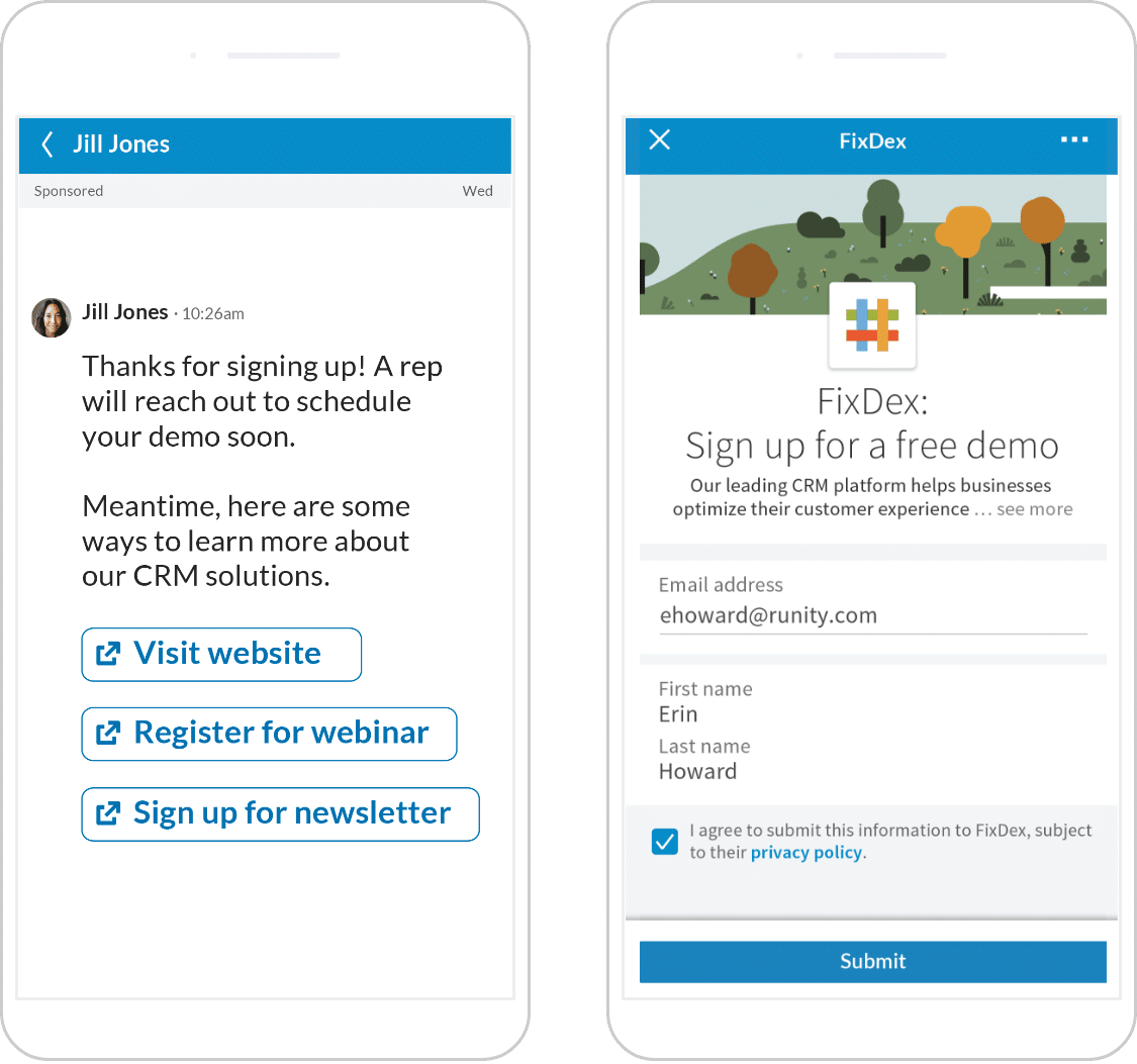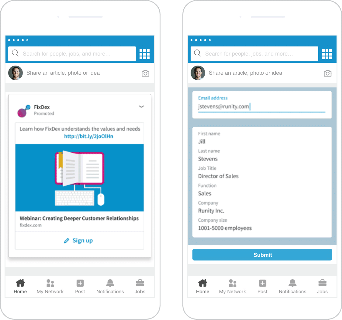Lead gen ads on LinkedIn can be easily integrated into other types of ads, but they come with a twist that allows you to harness the interest from the get-go with lead gen forms: