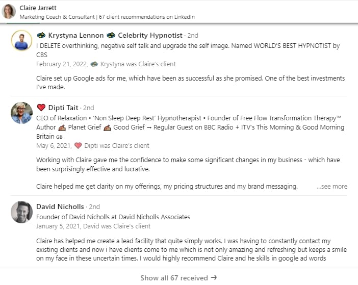 Firstly, create a company page for your accounting firm. Then, ask your existing clients for recommendations.